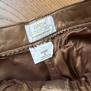 Linda Lundstrom Bronze Leather Pants High Waist Straight Leg Vintage Size 6
