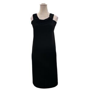 Linda Lundstrom M black sleeveless velour bodycon slip dress cowl rounded neck