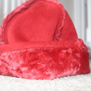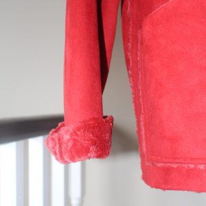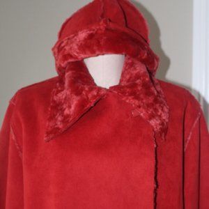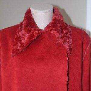 Linda Lundstrom Reversible faux suede ruby red jacket with matching hat