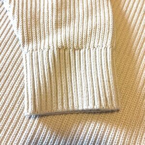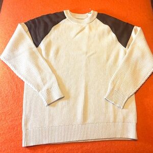 Lindbergh ivory and brown suede like shoulders ribbed chunky sweater new with tags. Velvety faux-suede inserts on the shoulders, raglan sleeves, 100% cotton ribbed chunky knit. Lindbergh is a Danish high end men clothing brand (sold by Simons). Colour is accurate in the stock photos, mine are taken in artificial light. Marked size L large, please see pictures for measurements. This item comes from a smoke free, pets friendly home. Recycled bags/box used when possible. Please, let me know if you'd like any additional info. Thanks for watching!