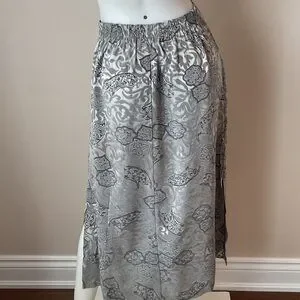 Measurements waist measured flat 13.5 inches, length 33 inches. There is no size or fabric tag; listed as size small, polyester blend