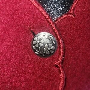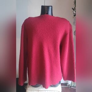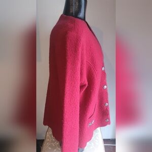 Lindor Red Pure Wool Embroidered Cottagecore Cardigan Sweater L