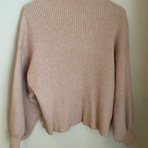 Bishop sleeves and a boxy shape bring unique, exaggerated proportions to this Line & Dot sweater. Slight funnel neckline. Snug cuffs.