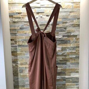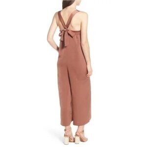 Delicate shirring at the neckline enhances the flowy, baggy shape of a chic and playful day-to-night jumpsuit with cropped wide legs and tie straps.