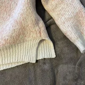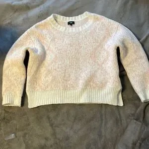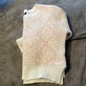Line Knit Sweater. Crew neck. Super cozy. Size xs. Colour is pink and white with cuffs and trim all white. Fits boxy. Side slits.