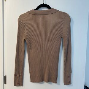 Stylish tan ribbed knit button-up long-sleeve top. Perfect for fall and layering. Size XS
