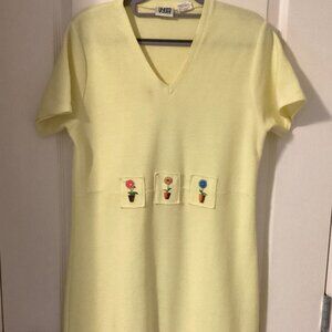 Line Two Women's Yellow Knitted Maxi Long Shift Dress Size M Short Sleeve Pull-on