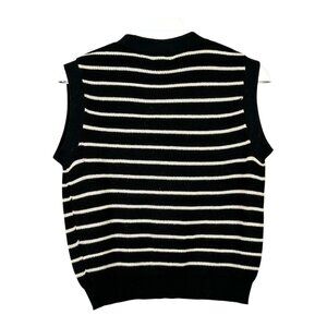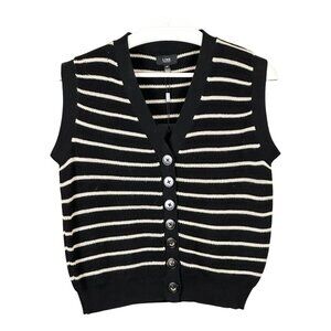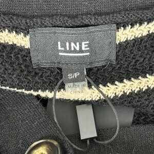 Line the Label Linen Cotton Blend Vest Shadow Stripe. NWT.Black and tan striped button front vest. Solid black hem, arm cuffs, and collar down button front. Lightweight. V-neck. Relaxed fit. Materials: 55% Linen, 45% Cotton. No known flaws.
