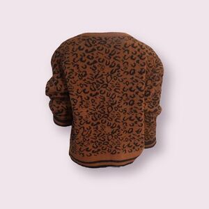 LINE cheetah print v neck sweater in brown and black. Super cozy. Slightly cropped boxy fit. Contrasting striped hem lines.