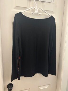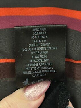 Linea Domain Limited Collection top with colorful stripes on the front and black on the back.