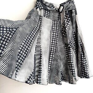 Linea Domani Linen Blend Polka Dot Black White Midi Skirt 12