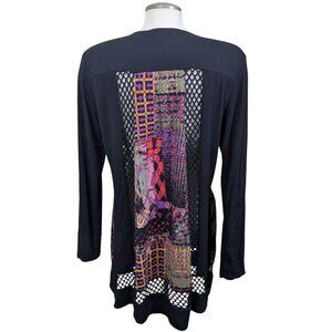 Linea Domani Longline Cardigan Sweater Womens L Open Front Artsy Mixed Media