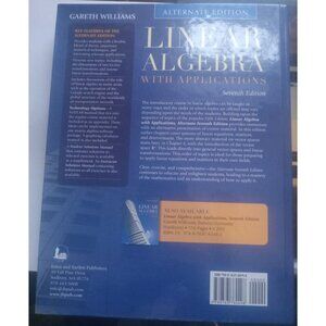 Dive into the world of linear equations and matrices with "Linear Algebra with Applications," an engaging alternate edition textbook by Gareth Williams. This comprehensive resource is ideal for students and professionals alike, offering a robust exploration of linear algebra suited for a variety of mathematical contexts.The book's clear and concise presentation is paired with relevant examples and exercises, ensuring a strong understanding of the material. Whether you're prepping for exams or enhancing your professional skills, this title is a valuable addition to any academic collection.