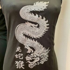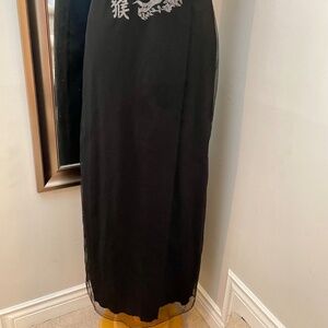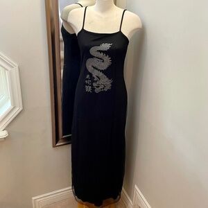 Lined silver dragon maxi dress with black mesh overlay size medium