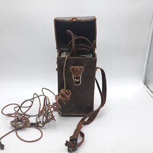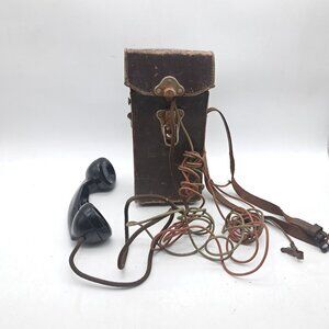 A vintage lineman's test set, made by Western Electric on April 24, 1948. It has 2 test leads but 1 at the phone side has come off from its end and needs to reconnected. It is in a brown leather case; the tester is attached to it with a screw. The leather strap has only 1 hole left. Unfortunately I have no means to test it.