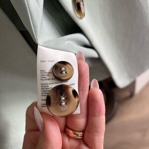 Oak and fort linen blazer in light mint green. Oversized fit, photos on model in blue colour for reference. Like brand new!! Pockets still stitched closed.