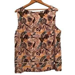 High quality linen blend by Edinburgh Woollen Mill’s Isle Collection. Beautiful earthy tones in this floral pattern sleeveless top. This top is ultra comfy and perfect for hot summer days!