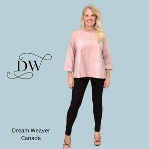 Details: Round neck, 3/4 sleeve, swing fit linen top. Sleeves are cuffed up in these photos.