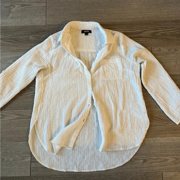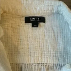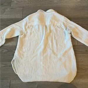 White textured linen button up/ bathing suit cover up size medium women’s!