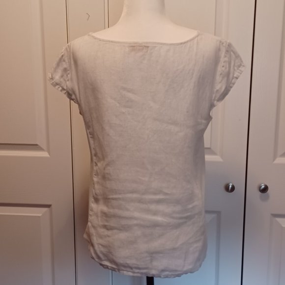 Linen Cap Sleeve Blouse - Made in Italy - Bella Amore - Ecru - Size M