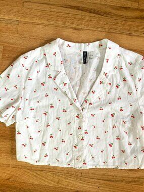 Linen Cherry Button Down - H&M Divided - size S