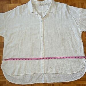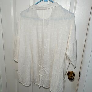 Elevate your wardrobe with this elegant cream button-up top. Perfect for any occasion, this versatile piece offers both comfort and style.