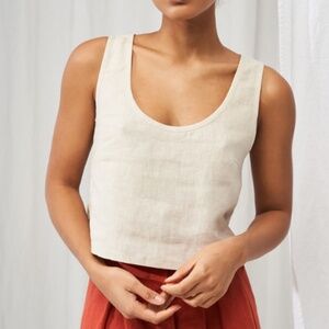 Linen Handmade Studio LINEN CROP TOP Stella in Cream Tan XS