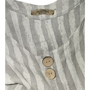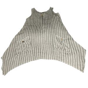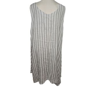 Linen Italy Tunic Dress Grey & White Stripe Bohemian Pockets