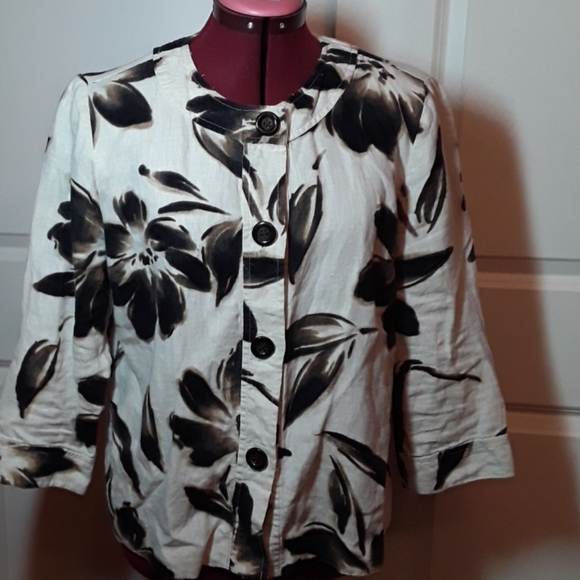 JM Collection petite size 12 sand and brown linen jacket. Light and beautiful.