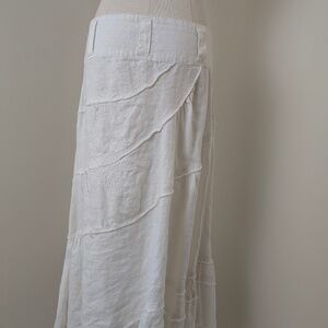 Linen Le Chateau Midi Skirt Asymmetrical White High Low Tiered Frayed Distressed