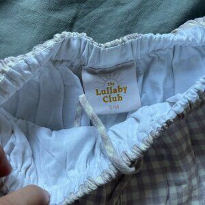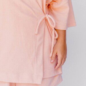 Top is a wrap and the bottoms are elastic waste and loose fit