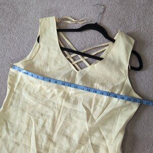 This elegant butter yellow shift dress features a stylish crisscross back design. Perfect for any occasion this summer! Love it but it doesnt fit my hips