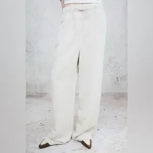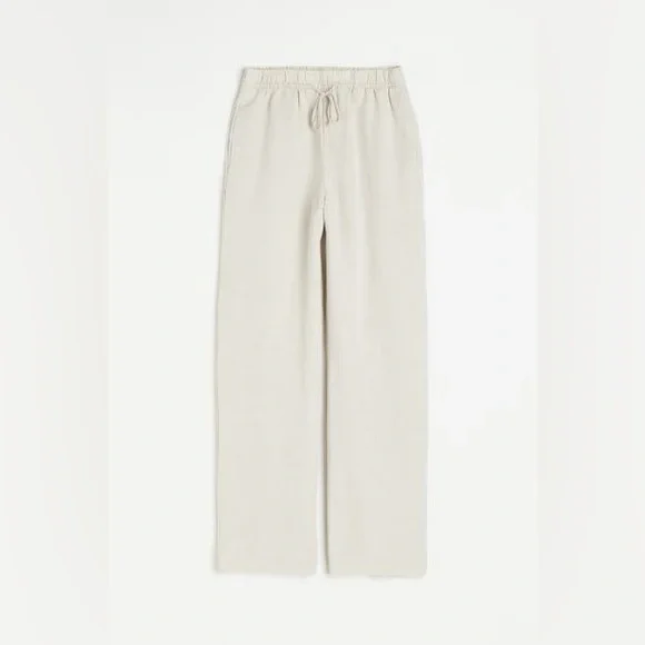 Full-length pants in an airy, woven viscose and linen blend. High waist, elasticized, drawstring waistband, and wide legs with side-seam pockets.