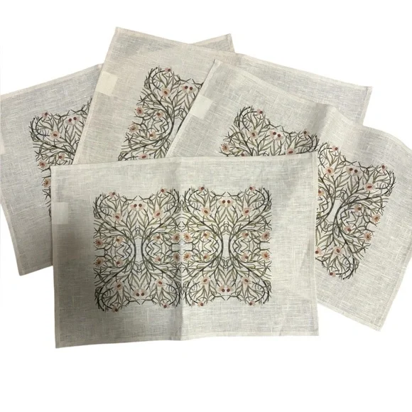 Prints on Linen Set of 4 floral linen placemats with intricate floral design. Features green and orange accents. Two sets of 4 available. NWOT