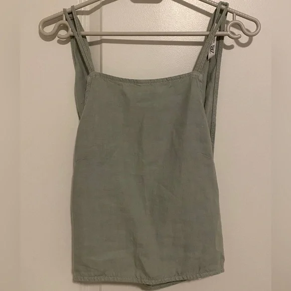 Lightweight sage green linen camisole, perfect for summer. Worn only once or twice. Straps cross in back. Brand: Zara Size: XS can fit S as well