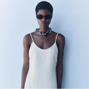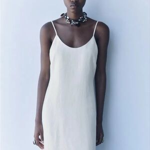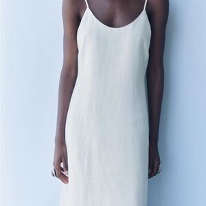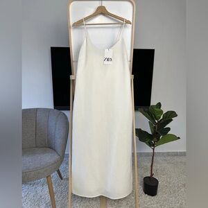 Chic linen white dress with cotton lining. Zipper back closure. Perfect for any occasion. High quality.