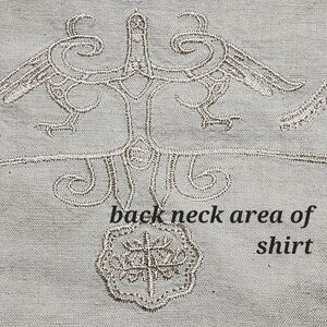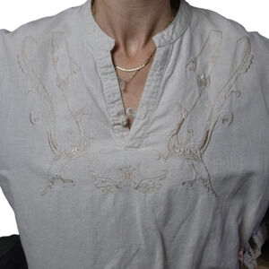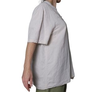 Linen blend Box shirt with embroidery Short sleeves cream color Size L UTCOCO