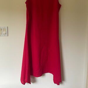 Linen blend red asymetrical midi summedress - viscose / linen / poly - Like new