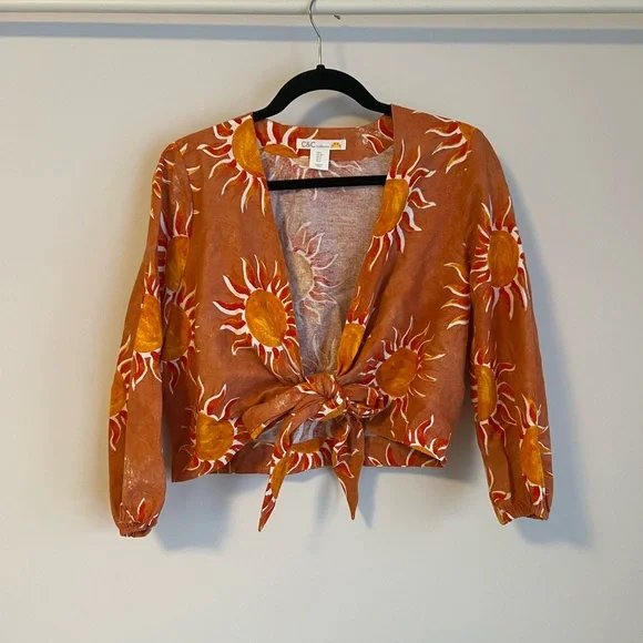 Orange linen blouse with vibrant sun print from Marshalls! (Worn once)