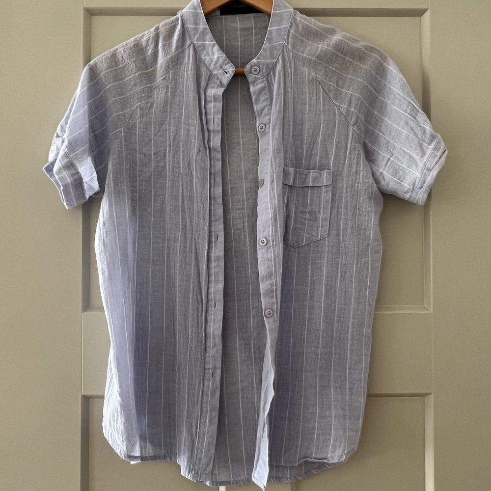 Striped linen button up in soft blue and white. Bought at a local shop called Workhall