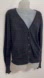 Moda International black linen cardigan with slightly rolled hem edge and bronze toned metal buttons. The cuffs ruffle slightly. Useful item this time of year when it’s cool in the am but hot by mid day.