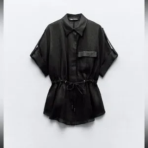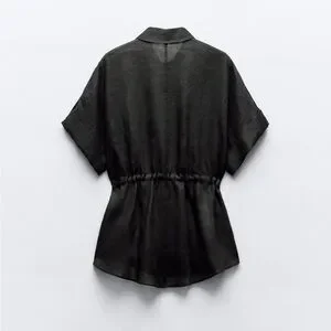 Lapel collar shirt with short turned-up sleeves.