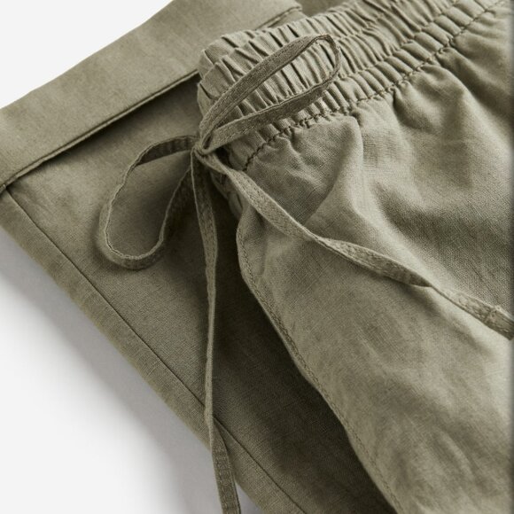 Khaki linen H&M drawstring joggers style pants with pockets.