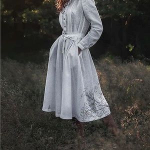Linen midi dress Modest wedding dress Pagan clothing Wedding guest dress Boho linen dress Goddess dress Fairy dress Linen summer dress