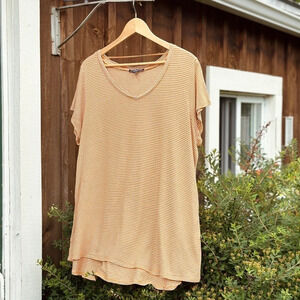 Linen mix Cable & Gauge Striped V-neck Tee - mustard/white - 1X