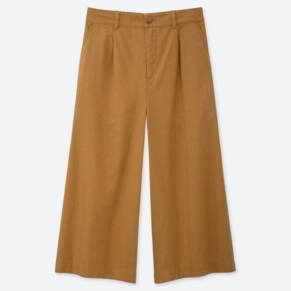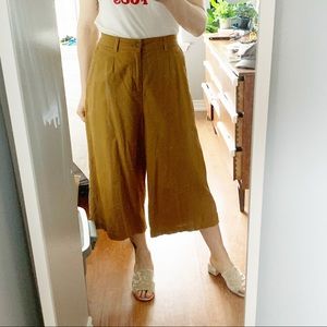 Wide-leg cropped pants in a beautiful ochre colour, with elastic at the back of the waist and a hidden drawstring. These are comfortable like sweats but classic and breezy like linen.
