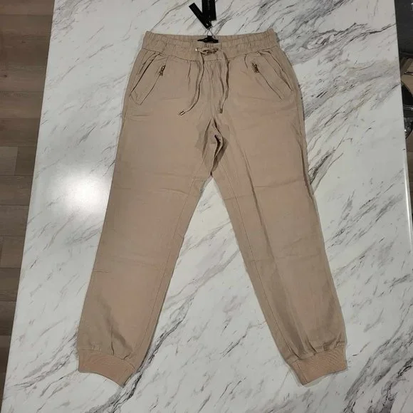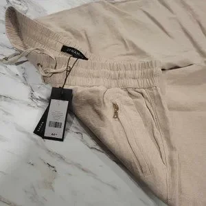 Dynamite Linen pants. Size small, 26" inseam, 55% Linen, 45% Rayon. Never worn, elastic cuffs still perfect condition. Draw string waist