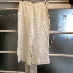 100 % linen pants Gently worn Size 3 is approx L and inseam is 24” Side zipper and small area of elastic on each size