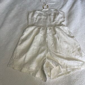 Linen-Blend O-Ring Halter Romper -- 3-inch inseam