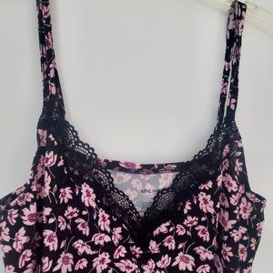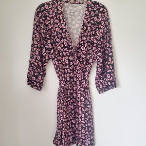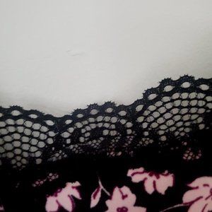 Lingerie Set Robe & Chemise Ditzy Pink Floral on Black Lace Detail Loungey Comfy